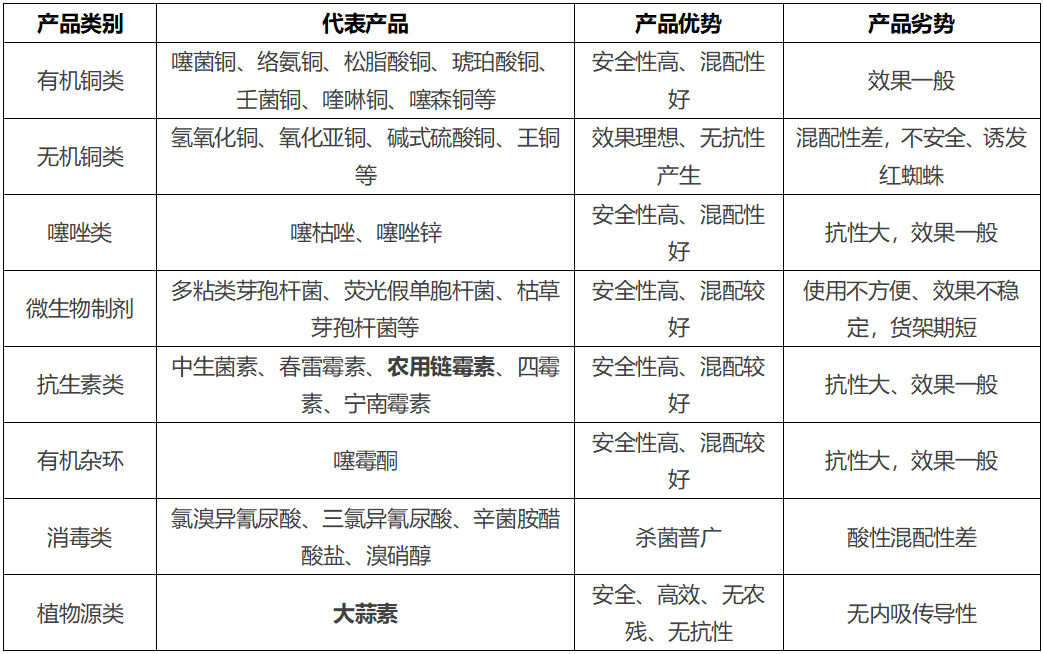 目前市面防治細菌性病害的藥主要有無(wú)機銅、有機銅、消毒類(lèi)、抗生素類(lèi)、微生物制劑、有機雜環(huán)類(lèi)等殺菌劑。但在使用過(guò)程中總面臨抗性升高、防效不理想、安全性差、混配性差、農殘超標等系列問(wèn)題。那農戶(hù)究竟該如何選擇或靈活使用這些殺菌劑,更好的保護蔬菜,并規避安全隱患呢?