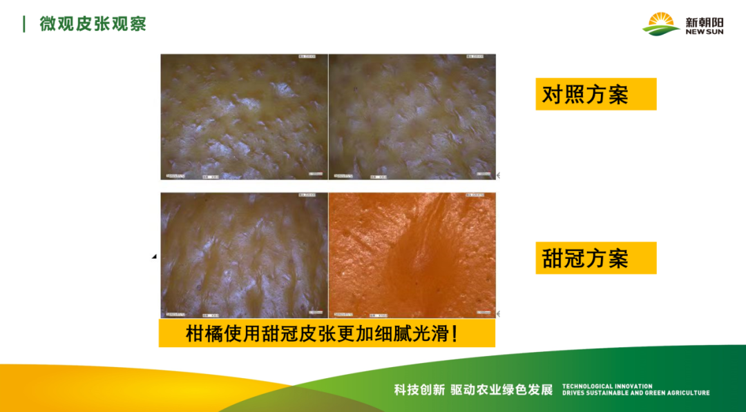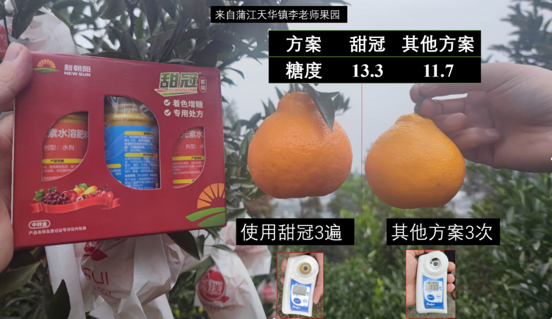 甜冠(冠菌素)適用于各類(lèi)柑橘品種,如愛(ài)媛、金秋砂糖橘、砂糖橘、冰糖橙、金桔、沃柑、耙耙柑、不知火等。促進(jìn)果實(shí)轉色、顏色紅潤,表皮靚麗,提升干物質(zhì)積累,如提升糖度、芳香味物質(zhì)積累,提高果實(shí)品質(zhì),提前上市,提升抗逆性,延長(cháng)果實(shí)留樹(shù)保鮮和果實(shí)貨架期,減少流通環(huán)節損耗。